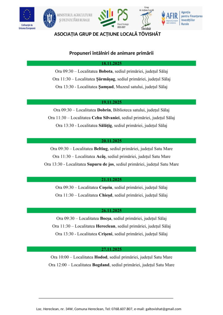 În luna noiembrie, echipa GAL Tövishát va fi prezentă în mai multe localități pentru a discuta despre oportunitățile de dezvoltare locală, nevoile comunității și pregătirea viitoarelor evenimente!
