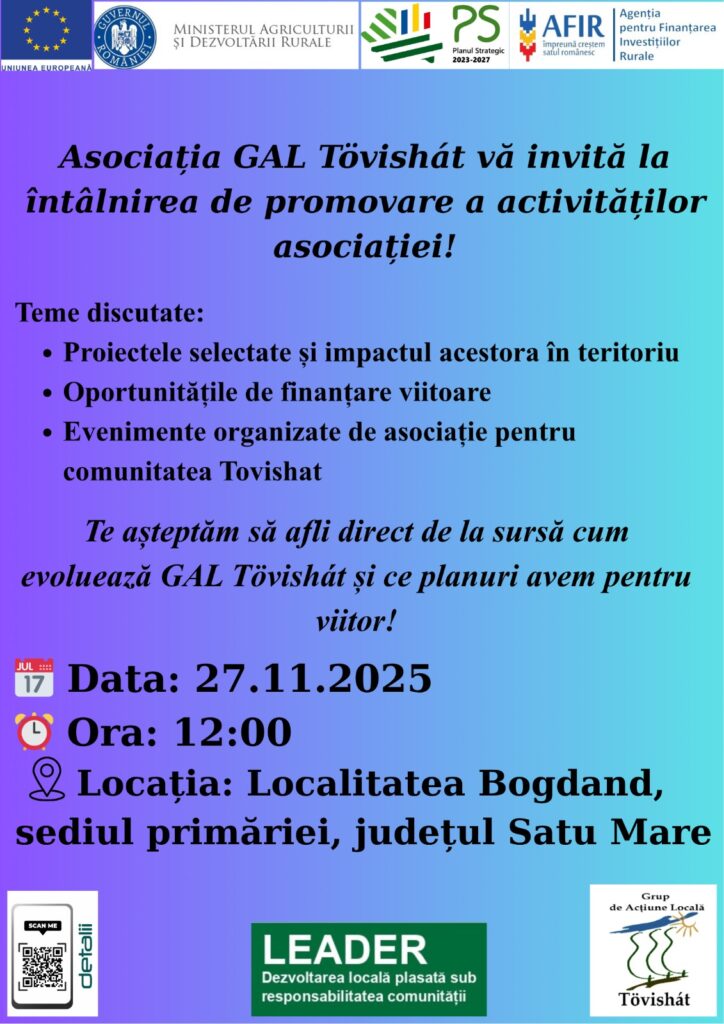 Asociația GAL Tövishát vă invită la întâlnirile de promovare a activităților asociației! ![]()