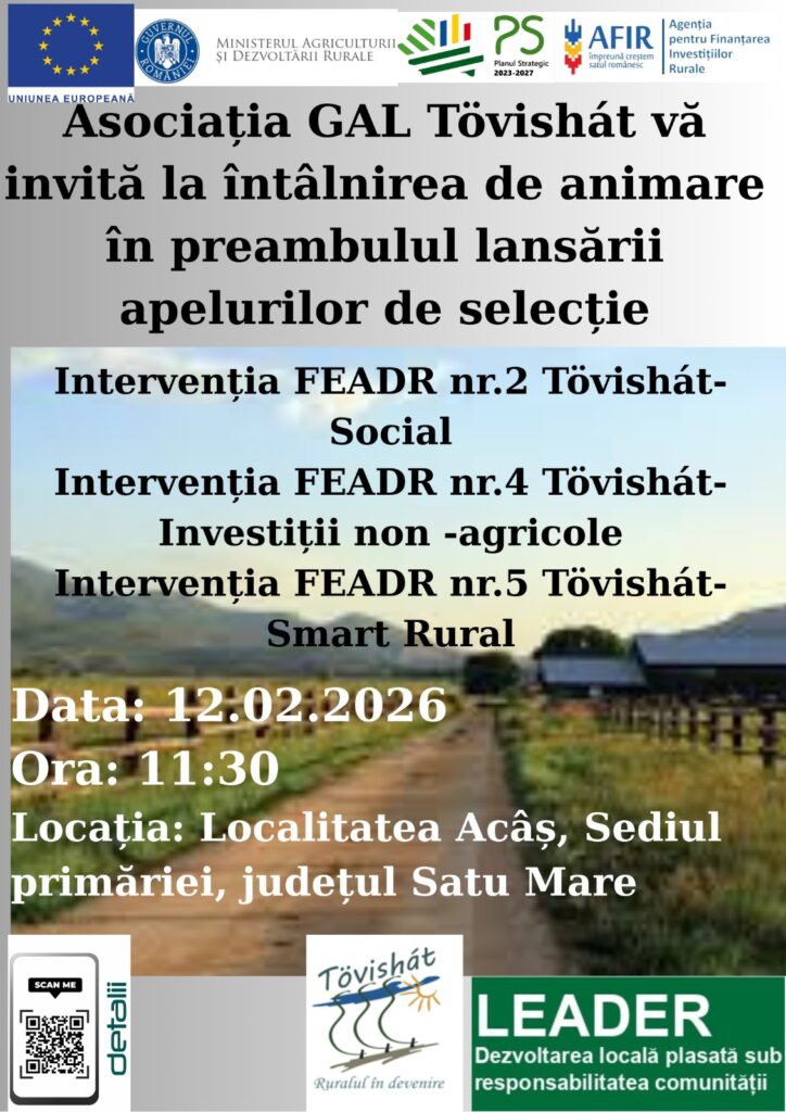 Vă așteptăm JOI, 12.02.2026 la întâlnirile de animare în preambulul lansării apelurilor de selecție în următoarele locații: